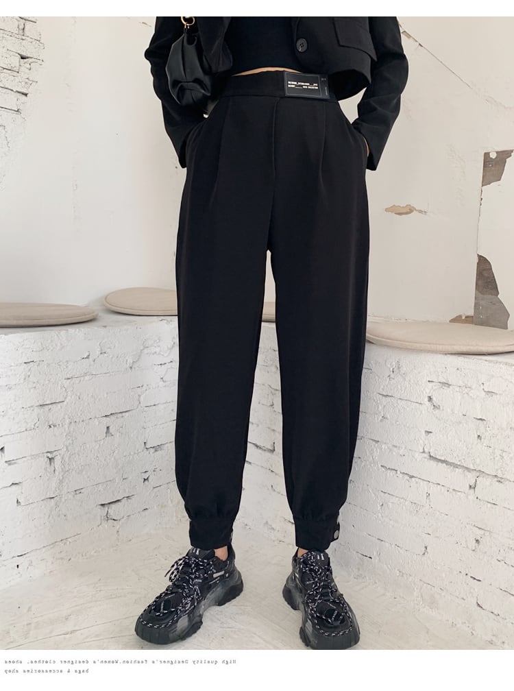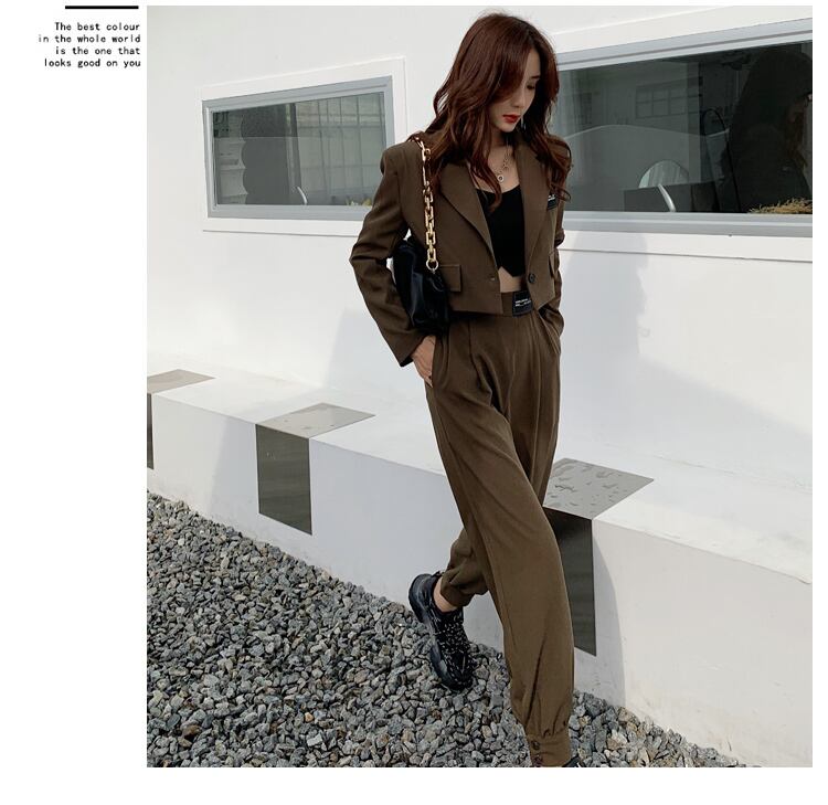 【送料無料】 2色 セットアップ ジャケット ショート丈 パンツ スーツ ロック 黒 茶色 個性的 裾タックパンツ ハイウエスト ブラック カーキ レディース スーツ 長袖 上下セット 大人可愛い きれいめ シンプル カジュアル 大人 おしゃれ かっこいい こなれ感 クール モード系 エレガント 無地 春 夏 秋 冬 10代 20代 30代 レディース オフィス ビジネス OL 通勤 着回し 普段使い モテ 体系カバー 美脚 脚長 定番 プチプラ トレンド 流行 海外 S M L XL db3048
