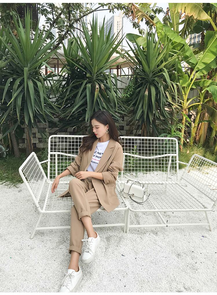 【送料無料】3色 セットアップ パンツ スーツ レディース かっこいい 上下セット 長袖 ジャケット アンクル丈 7部丈 パンツ ズボン ロールアップ 大人可愛い きれいめ シンプル こなれ感 クール カッコイイ 個性的 ツーピース XS S M L XL 2XL 大きいサイズ 小さいサイズ ベージュ ブラック 黒 ブラウン 茶 無地 春 秋 オフィス ビジネス OL 通勤 お出かけ リクルート フォーマル パンツドレス パーティー お呼ばれ 結婚式 イベント ダンス 衣装 韓国 db2986