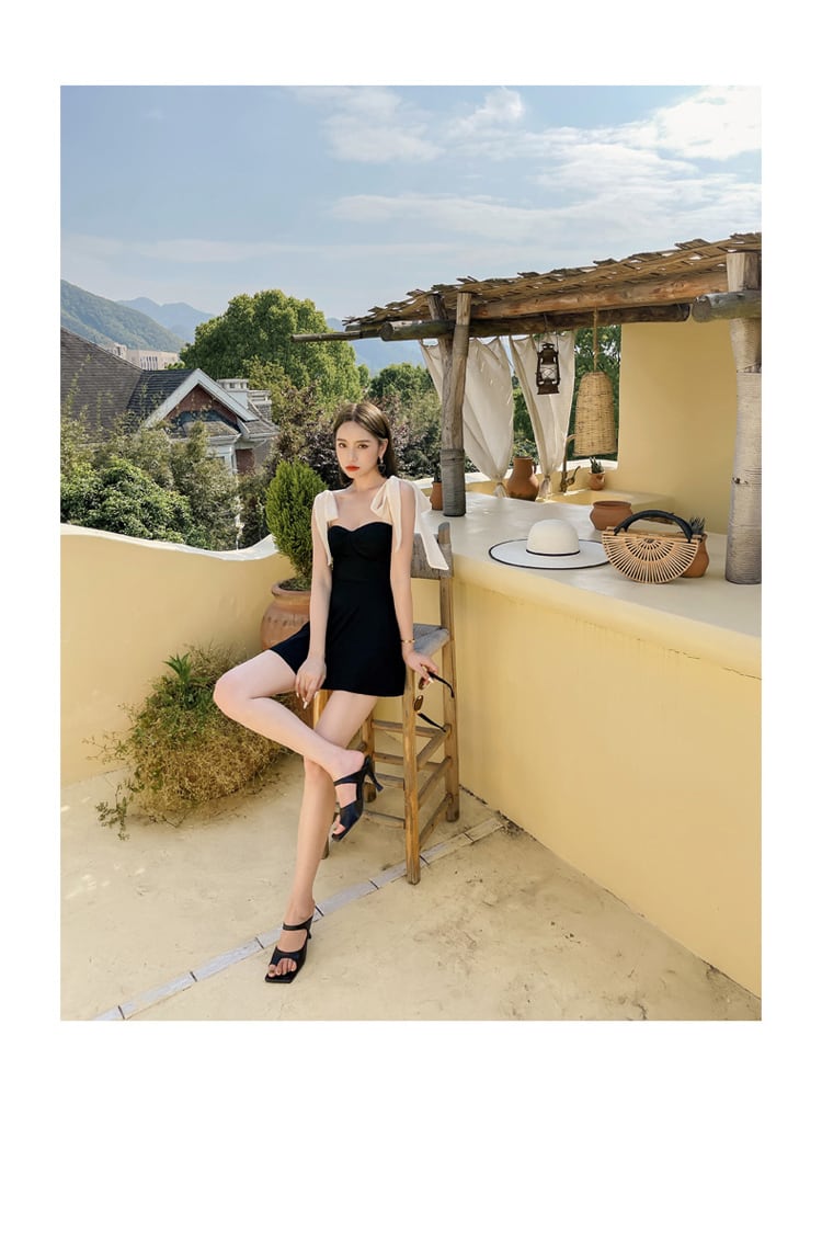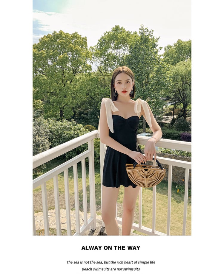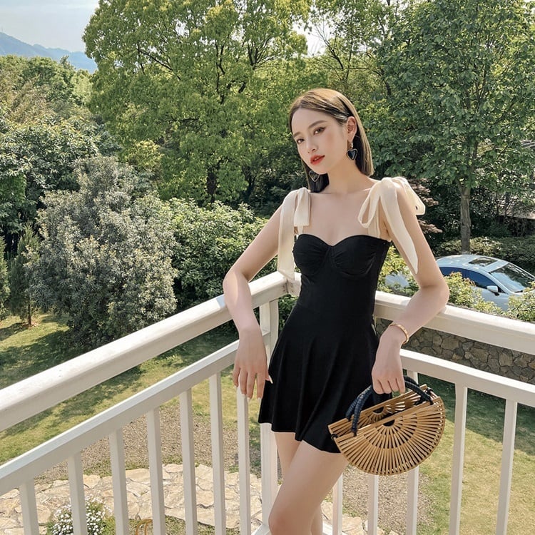 【送料無料】 水着 ワンピース レディース 黒 ブラック モノトーン リボン かわいい 大人可愛い バイカラー 体型カバー モノキニ きれいめ セクシー sexy スカート 水着 ワンピ 女性用 スイムウェア オールインワン シンプル ナチュラル ゴージャス 華やか 大人 おしゃれ レトロ 主役級 存在感 女っぽ ラブリー キュート ガーリー 無地 10代 20代 30代 大きいサイズ 海外 水着 モデル グラビア 衣装 撮影 夏 海 ビーチ プール リゾート 着痩せ 安い M L XL db3058