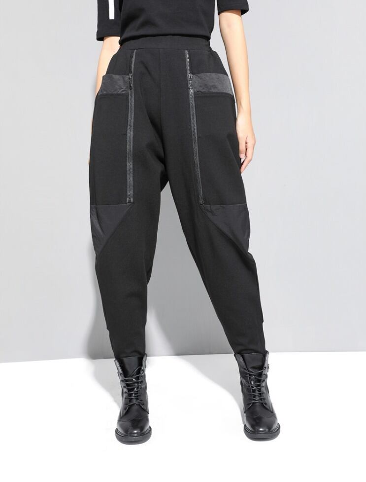 【送料無料】 ボトムス パンツ テーパードパンツ ドロップクロッチ 黒 無地 個性的 カッコイイ ブラック ワイド 切り替えデザイン 異素材MIX カジュアル 大人 おしゃれ ズボン かっこいい ラフ メンズライク ボーイッシュ スポーティー ロングパンツ クール モード系 主役級 存在感 春 夏 秋 冬 10代 20代 30代 レディース ママ お出かけ 着回し 普段使い 楽ちん 体系カバー トレンド スタイルアップ ラクシ― M L XL 2XL 大きいサイズ ゆったり db3077
