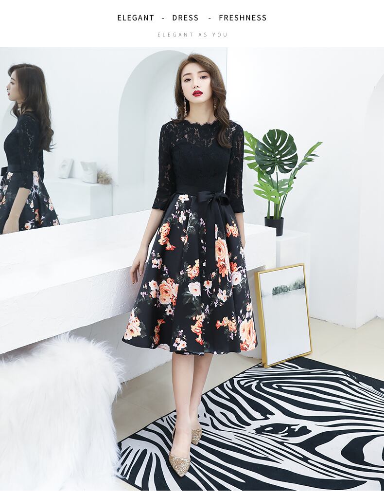上品なブラックレースと花柄の組み合わせがエレガントなパーティードレスです。
