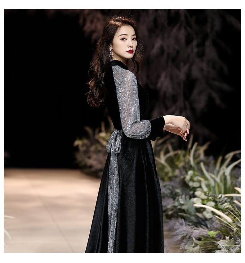 【送料無料】ロング ドレス パーティードレス 個性的 黒 袖あり バイカラー 結婚式 二次会 お呼ばれ フォーマル 演奏会 ピアノ 発表会 ドレス 大人 かっこいい 可愛い レディース イブニングドレス ブラック エレガント きれい 上品 切り替え 10代 20代 30代 40代 50代 XS S M L XL 2XL 大きいサイズ 同窓会 婚活 ロング丈 スリム 長袖 シースルー ウエストバックリボン お呼ばれ パーティー イベント 舞台 モデル 撮影 衣装 海外 韓国 ブラックドレス no2280
