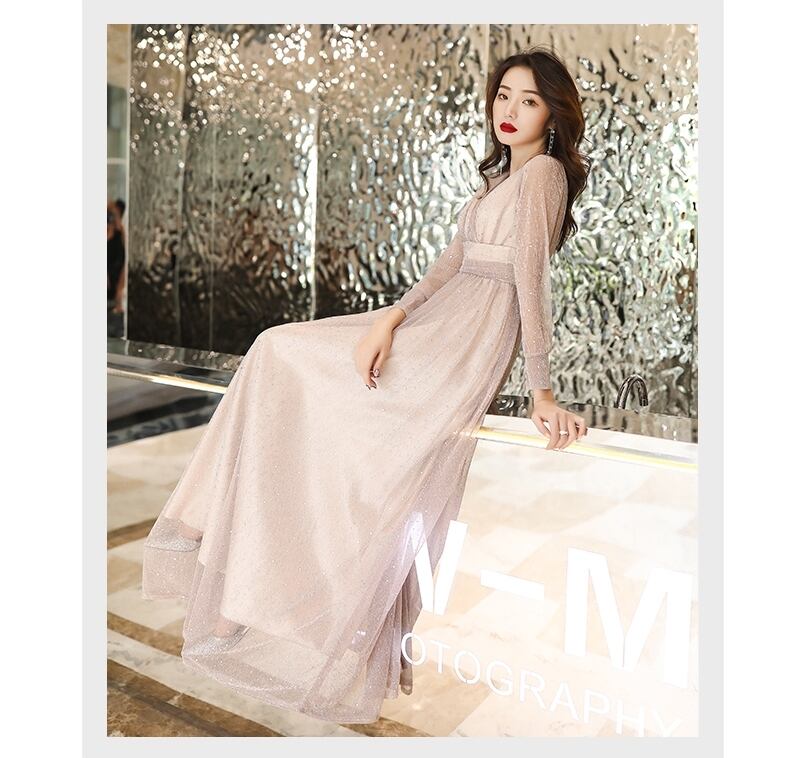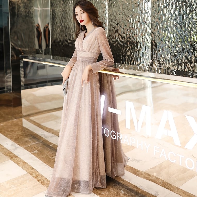 【送料無料】2色 ロング ドレス パーティードレス 個性的 長袖 きれいめ 透け感 キラキラ チュール 結婚式 二次会 お呼ばれ フォーマル 演奏会 ピアノ 発表会 ドレス ワンピース 大人 かっこいい 可愛い カシュクール 袖あり ベージュ 赤 レディース イブニングドレス エレガント Aライン 10代 20代 30代 40代 50代 XS S M L XL 2XL 大きいサイズ 婚活 ロング丈 スリム シースルー スパンコール ハイウエスト お呼ばれ パーティ イベント 衣装 海外 韓国 no2281