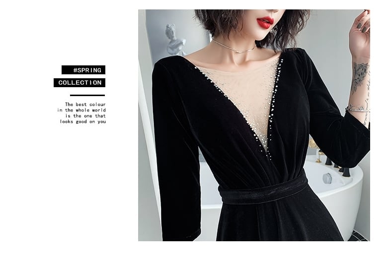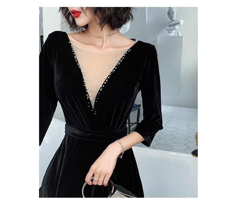 【送料無料】ロング ドレス パーティードレス 個性的 黒 袖あり Vネック ビジュー パール 結婚式 二次会 お呼ばれ フォーマル 演奏会 ピアノ 発表会 ドレス 大人 かっこいい 装飾 シンプル きれいめ エレガント ミセス 可愛い レディース Aライン 肌見せ 透け感 20代 30代 40代 50代 S M L XL 2XL 大きいサイズ 同窓会 記念日 誕生日 お呼ばれ パーティー イベント 舞台 モデル 撮影 衣装 海外 韓国 dress ロング丈 イブニングドレス ブラックドレス no2286