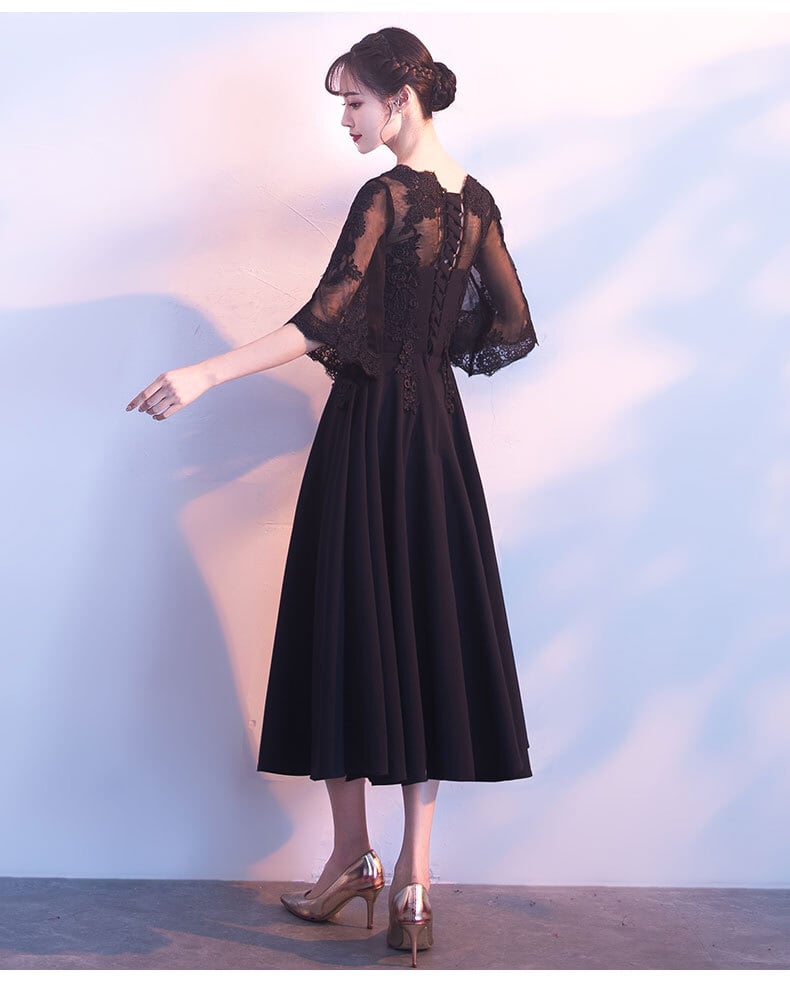 【送料無料】パーティードレス ミモレ丈 袖あり 黒 個性的 結婚式 二次会 お呼ばれ ドレス フォーマル 演奏会 ピアノ イベント お呼ばれ パーティー 舞台 モデル 衣装 撮影 発表会 大人 ワンピース かわいい レース 透け感 フレア 大きいサイズ XS S M L XL 2XL 3XL 4XL マント風 二の腕カバー Aライン 透け感 おしゃれ きれいめ 大人可愛い ブラックドレス お呼ばれ パーティー イベント 舞台 モデル 撮影 衣装 海外 韓国 dress カラードレス ロング丈 no2224