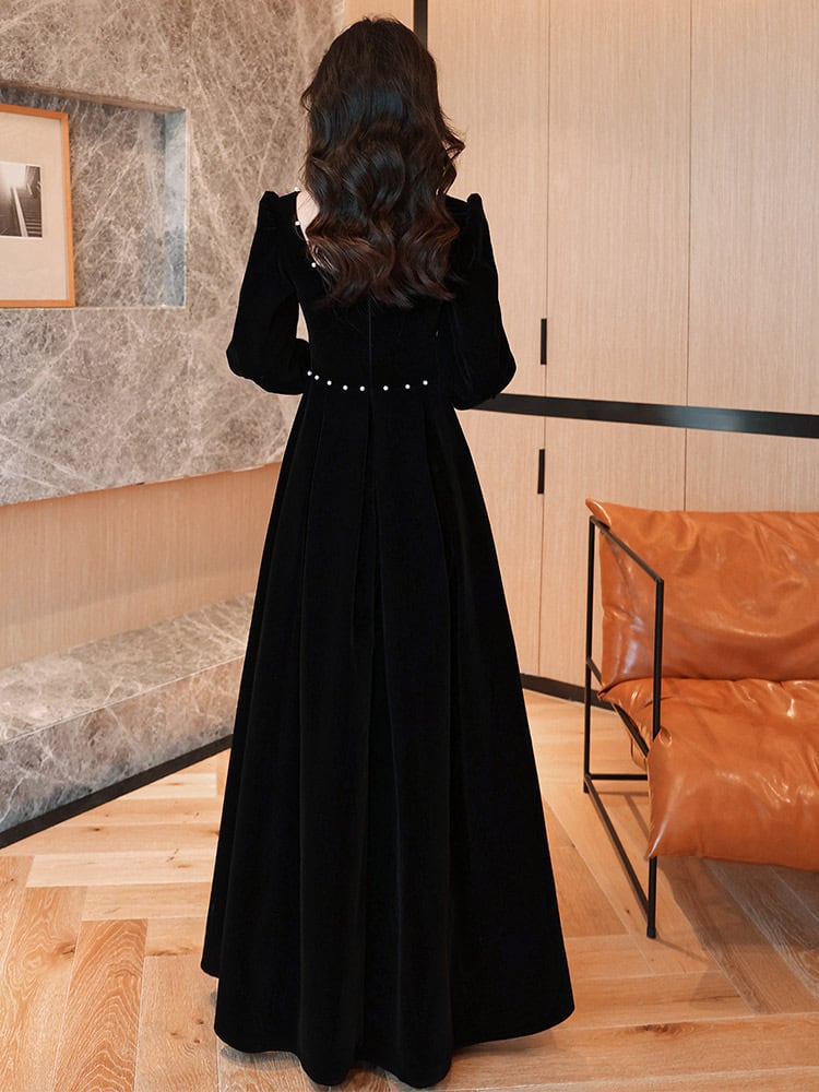 【送料無料】2色 ロング ドレス パーティードレス 個性的 黒 袖あり 結婚式 二次会 お呼ばれ フォーマル 演奏会 ピアノ 発表会 ドレス 大人 かっこいい パール ハートシェイプドネック 可愛い 2XS XS S M L XL 2XL 大きいサイズ パフスリーブ おしゃれ きれいめ フェミニン Aライン 長袖 大人 大きいサイズ XL 2XL 3XL お呼ばれ パーティー イベント 舞台 モデル 撮影 衣装 海外 韓国 dress イブニングドレス ブラックドレス カラードレス ロング丈 no2230