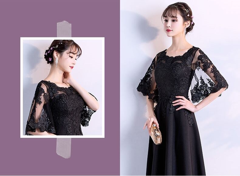 【送料無料】2色 ロング ドレス パーティードレス 個性的 黒 紺 袖あり マント風 二の腕カバー 結婚式 二次会 お呼ばれ フォーマル 演奏会 ピアノ 発表会 ドレス 大人 かっこいい 可愛い チュール 透け感 花柄 レース 刺繍 スカラップ襟 ラウンドネック 五分丈 2XS XS S M L XL 2XL フェミニン Aライン スリム スレンダー お呼ばれ パーティー イベント 舞台 モデル 撮影 衣装 海外 韓国 dress イブニングドレス ブラックドレス カラードレス ロング丈 no2238