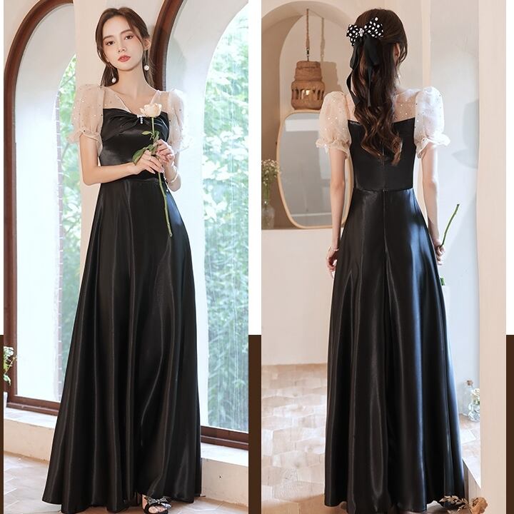 【送料無料】ロング ドレス パーティードレス 個性的 黒 袖あり 半袖 バイカラー かわいい 結婚式 二次会 お呼ばれ フォーマル 演奏会 ピアノ 発表会 ドレス パフスリーブ シフォン ブラウス風 キャンディースリーブ おしゃれ ガーリー ラブリー ラメ グリッター Vネック ビジュー Aライン フレア 2XS XS S M L XL 2XL 3XL 大きいサイズ モノトーン 白 お呼ばれ パーティー イベント モデル 撮影 衣装 海外 韓国 dress ブラックドレス ロング丈 no2241