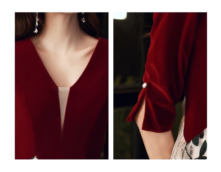 【送料無料】ロング ドレス パーティードレス 個性的 赤 花柄 袖あり バイカラー おしゃれ 結婚式 二次会 お呼ばれ フォーマル 演奏会 ピアノ 発表会 ドレス 大人 大人可愛い フェミニン 薔薇 ローズ 刺繍 フラワー フローラル チュール 五分袖 Vネック 半袖 ユニーク ドッキング 切り替え 派手 華やか 目立つ XS S M L XL 2XL 3XL 大きいサイズ お呼ばれ パーティー イベント 舞台 モデル 撮影 衣装 海外 韓国 dress イブニング カラードレス ロング丈 no2248