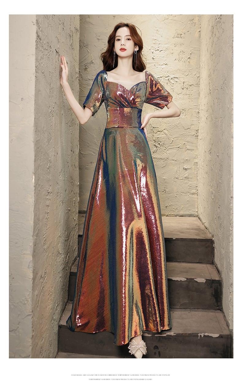 【送料無料】ロング ドレス パーティードレス 個性的 メタリック 光沢 プリンセス 袖あり 結婚式 二次会 お呼ばれ フォーマル 演奏会 ピアノ 発表会 ドレス 大人 かっこいい 可愛い リボン 半袖 ハートシェイプドネック 虹色 ハイウエスト 派手 きれいめ Aライン 存在感 主役級 フェミニン 豪華 ゴージャス XS S M L XL 2XL 3XL 大きいサイズ お呼ばれ パーティー イベント 舞台 モデル 撮影 衣装 海外 韓国 dress イブニングドレス カラードレス ロング丈 no2255