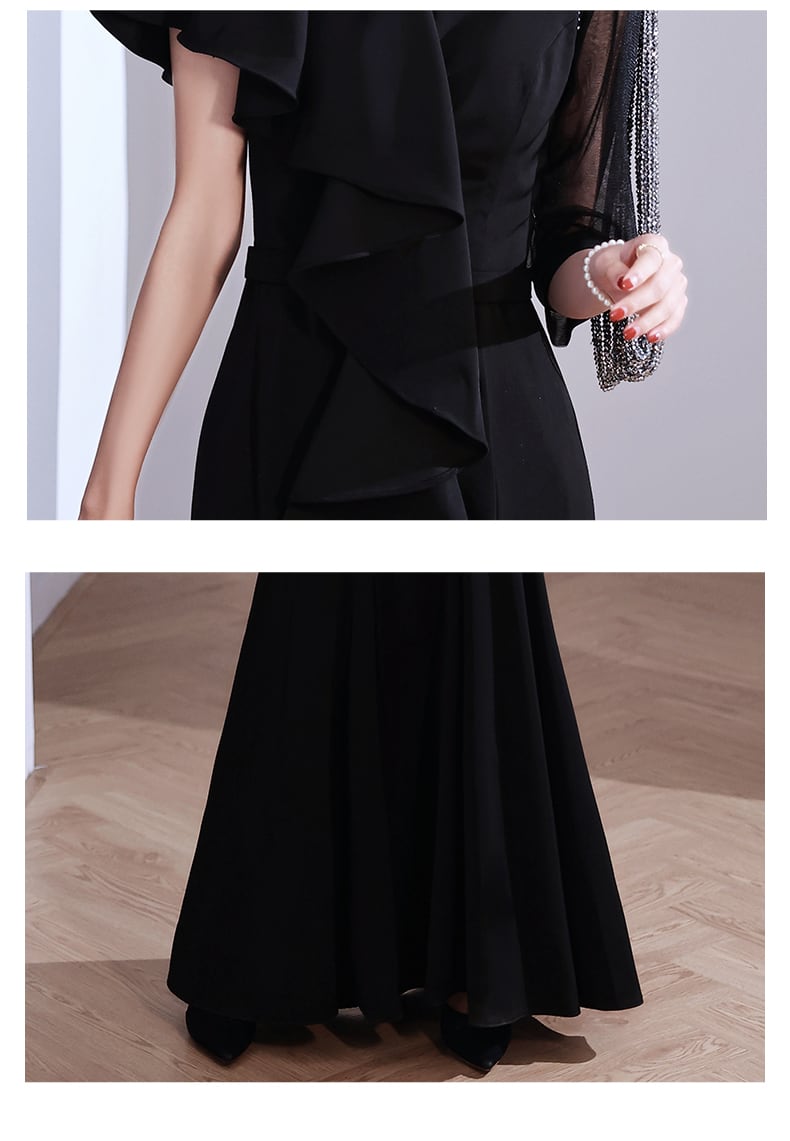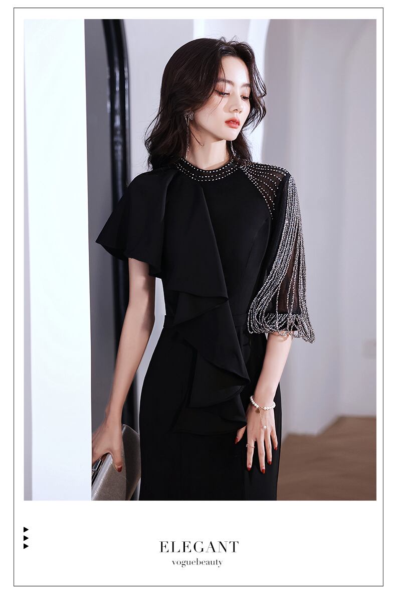 肩からウエストにかけてのフリルがエレガントなブラックドレスです♪
