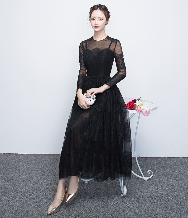 【送料無料】ロング ドレス パーティードレス ミモレ丈 長袖 レース 透け感 個性的 黒 袖あり 大人可愛い 結婚式 二次会 お呼ばれ フォーマル 演奏会 ピアノ 発表会 ドレス ワンピース 大人 かっこいい 可愛い Aライン プリンセス レディース シースルー スレンダー 総レース 華やか ナチュラル ブラック エレガント 10代 20代 30代 S M L XL お呼ばれ パーティー イベント 舞台 モデル 撮影 衣装 海外 韓国 dress ロング丈 イブニングドレス ブラックドレス no2300