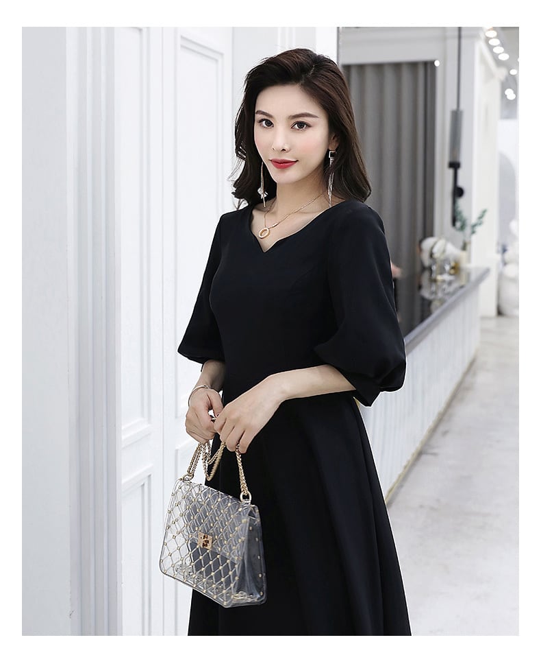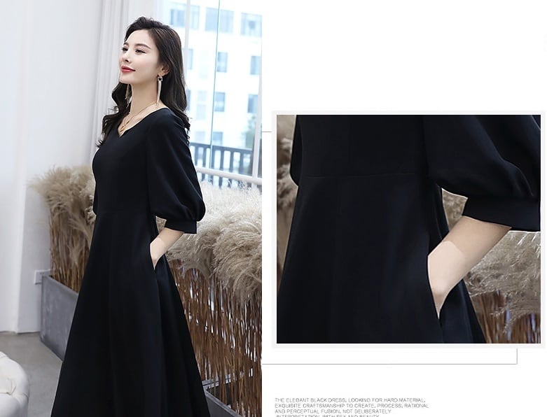【送料無料】ロング ドレス パーティードレス 黒 無地 シンプル プリンセス 袖あり 個性的 フレア Aライン 結婚式 二次会 お呼ばれ フォーマル 演奏会 ピアノ 発表会 ドレス ワンピース 大人 かっこいい 可愛い 定番 ベーシック 上品 ブラックドレス エレガント ベロア風 Vネック ボリューム袖 20代 30代 40代 50代 S M L XL 2XL 3XL 4XL 5XL 6XL 大きいサイズ お呼ばれ パーティー 衣装 海外 韓国 dress ロング丈 シック モダン レトロ no2305