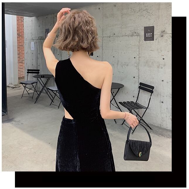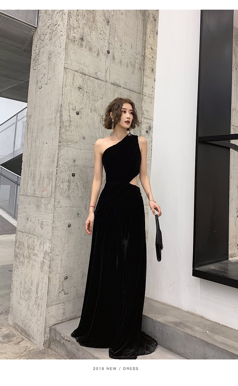 【送料無料】ロング ドレス パーティードレス 個性的 黒 袖なし ワンショルダー マキシ丈 スリット 肩出し セクシー スレンダー カッコイイ 結婚式 二次会 お呼ばれ フォーマル 演奏会 ピアノ 発表会 ドレス ワンピース 大人 かっこいい ドレープ レディース アシンメトリー 肌見せ チラ見せ 色っぽい レトロ クール モード ブラックドレス イブニング 10代 20代 30代 XS S M L XL 2XL 大きいサイズ お呼ばれ パーティー 撮影 衣装 海外 韓国 dress no2307