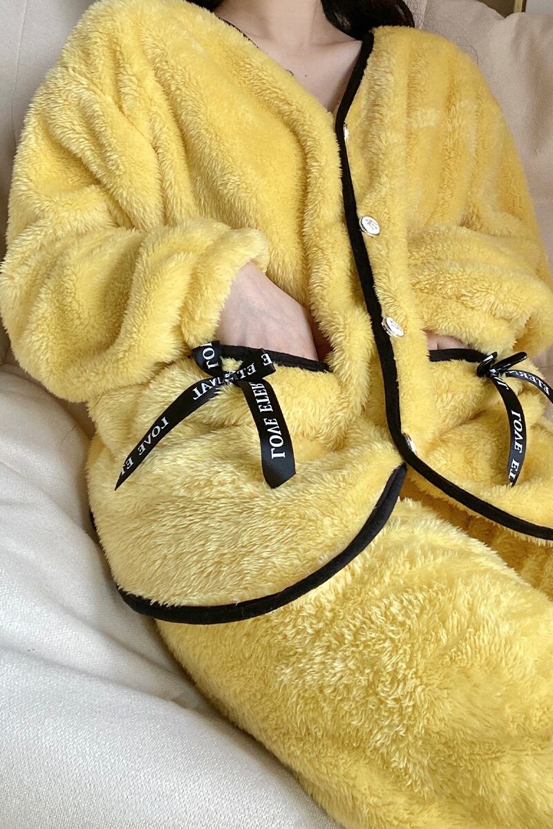 【送料無料】4色 ルームウェア 上下セット もこもこ フリース パンツ 厚手 部屋着 レディース 長袖 長ズボン 秋 冬 かわいい シンプル おしゃれ 前開き ポケット ベージュ ホワイト グレー ピンク イエロー 黄色 灰色 無地 大きいサイズ M L XL 2XL シンプル カジュアル キュート お洒落 ガーリー 甘め かわいい 女の子 女性用 着る毛布 寝巻き ホームウェア 10代 20代 30代 40代 オフ 休日 リラックス モテ あったか 防寒 暖かい 韓国 ファッション db2872