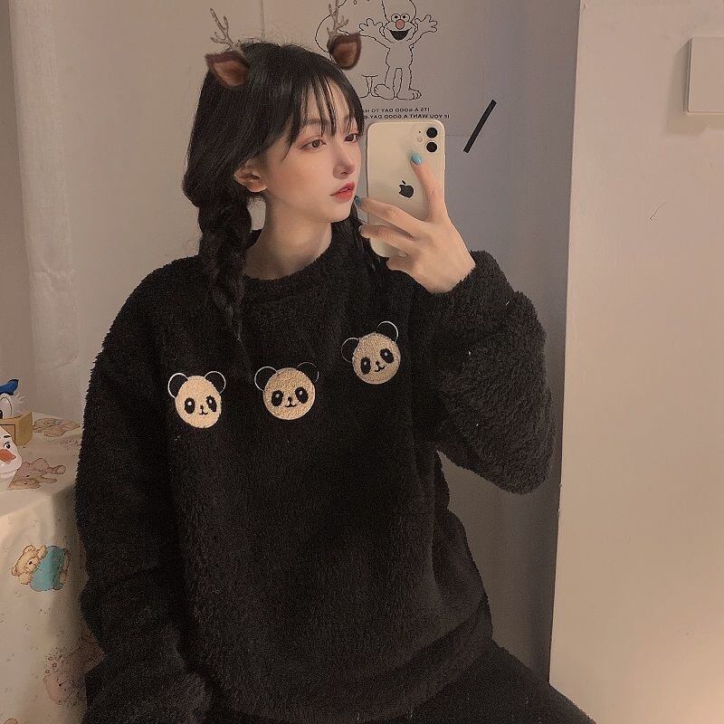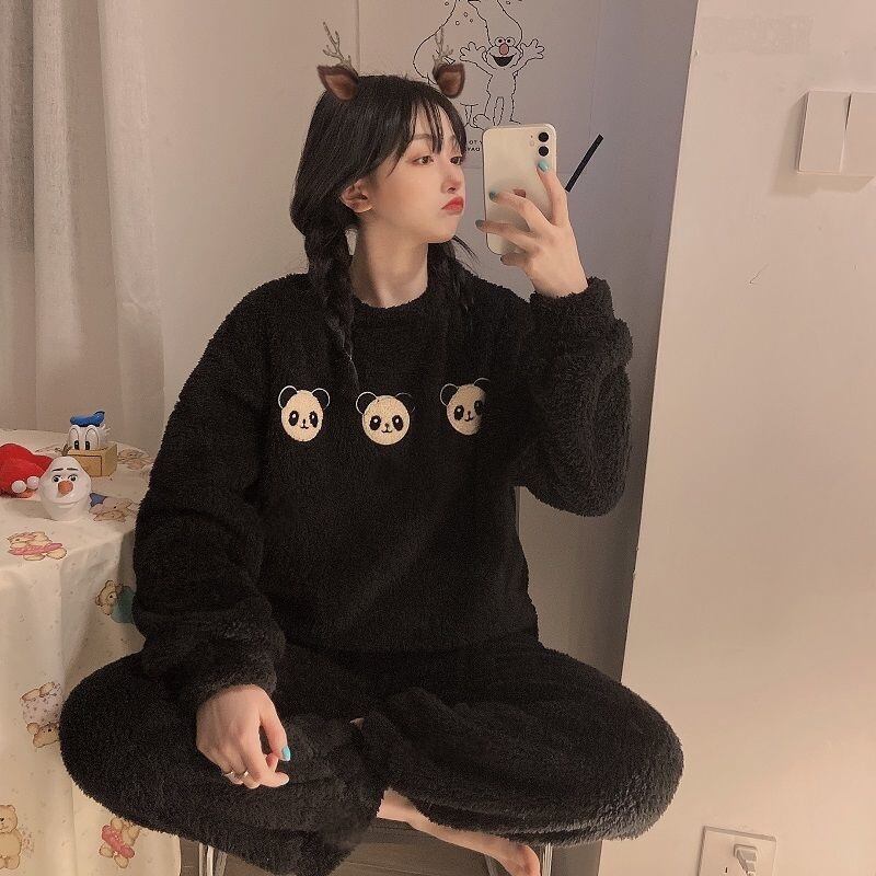 【送料無料】4色 ルームウェア 上下セット もこもこ パジャマ モコモコ 長袖 長ズボン 春 秋 冬 ホワイト 白 ブラック 黒 パンダ ぱんだ スマイリー スマイル ニコちゃん アニマル 大きいサイズ M L XL 2XL シンプル カジュアル キュート お洒落 ガーリー 甘め かわいい おしゃれ 女の子 着る毛布 フリース ズボン 寝巻き ホームウェア 10代 20代 30代 オフ リラックス 休日 デート お泊まり 旅行 あったか 暖かい 韓国 ファッション ナイトウェア フランネル db2873