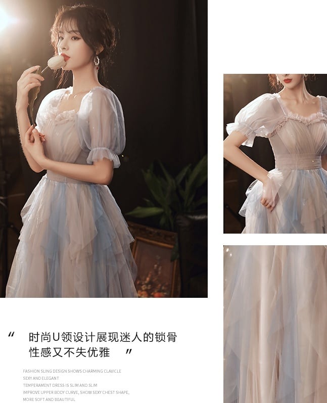 【送料無料】ロング ドレス パーティードレス 個性的 バイカラー 袖あり ニュアンス くすみカラー プリンセス お姫様 パフスリーブ 結婚式 二次会 お呼ばれ フォーマル 演奏会 ピアノ 発表会 ドレス ワンピース 大人 かっこいい エレガント 清楚 お嬢様 上品 レトロ ガーリー ラブリー 主役級 衣装 カラードレス 10代 20代 XS S M L XL 2XL 3XL 大きいサイズ お呼ばれ パーティー 海外 韓国 dress ロング丈 半袖 エアリー ふんわり チュール 妖精 no2312