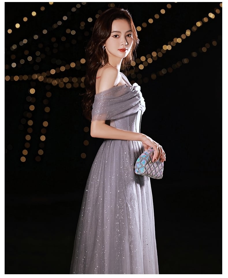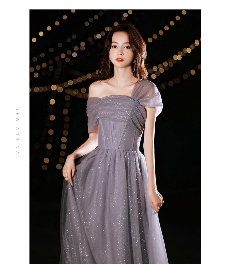【送料無料】ロング ドレス パーティードレス 個性的 袖あり 大人 Aライン ワンショルダー チュール 透け感 ブルー グレー くすみカラー ラメ 結婚式 二次会 お呼ばれ フォーマル 演奏会 ピアノ 発表会 ドレス ワンピース 大人 かっこいい 可愛い エレガント シック エアリー 肩出し アシンメトリー クール 色っぽい セクシー 10代 20代 30代 XS S M L XL 2XL 3XL 大きいサイズ お呼ばれ パーティー 衣装 海外 韓国 dress ロング丈 カラードレス no2315