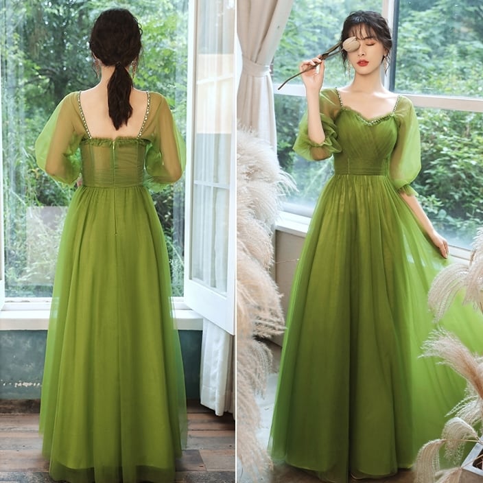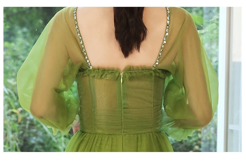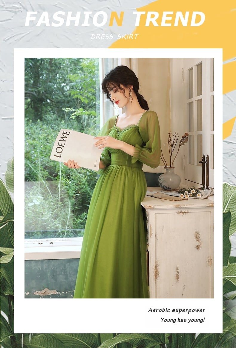 【送料無料】ロング ドレス パーティードレス グリーン 緑 プリンセス 個性的 袖あり チュール 透け感 大人可愛い レトロ 結婚式 二次会 お呼ばれ フォーマル 演奏会 ピアノ 発表会 ドレス ワンピース 大人 お姫様 清楚 お嬢様 ラブリー ガーリー エレガント 華やか エアリー ハイウエスト 10代 20代 30代 XS S M L XL 2XL 3XL 大きいサイズ お呼ばれ パーティー 衣装 海外 韓国 dress ロング丈 イブニングドレス カラードレス no2316