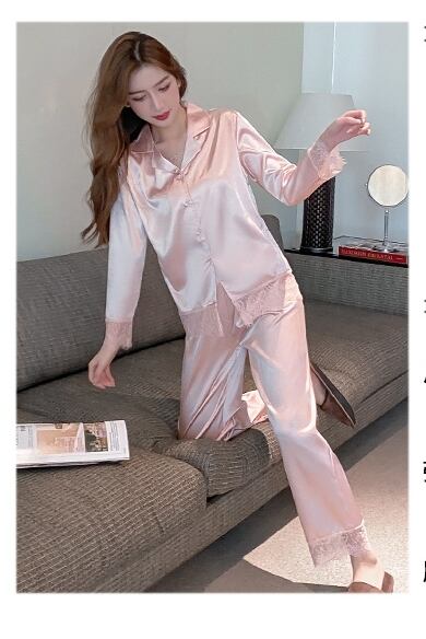 【送料無料】2色 パジャマ 上下セット 寝巻き 長袖 パンツ レディース サテン風 光沢 艶感 おしゃれ 大人女子 きれいめ 襟付き 薄手 前開き フロントボタン レース Vネック 春 秋 ルームウェア 部屋着 ピンク ブルー 青 無地 大きいサイズ M L XL 2XL カジュアル おしゃれ シンプル キュート かわいい 10代 20代 30代 40代 休日 デート お泊まり オフ リラックス 旅行 パジャマ ナイトウェア ズボン モテ スタイル 韓国系 セクシー 色っぽい 女っぽ db2878