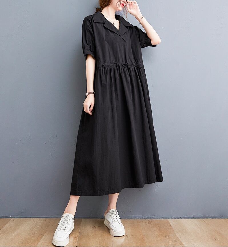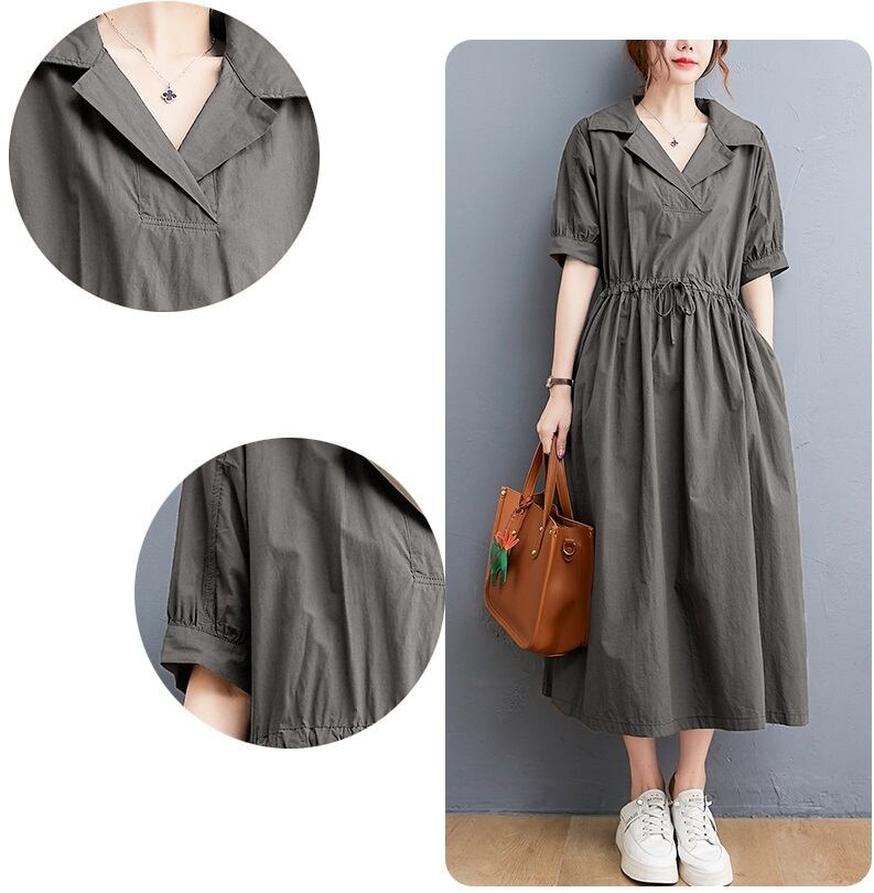 【送料無料】シャツ ワンピース ロング ミモレ丈 半袖 Vネック 襟付き ゆったり 大人っぽ シンプル 無地 ワンピ 春 夏 カワイイ カッコイイ ウエストマーク レディース 脚長 着痩せ 大きいサイズ L XL おしゃれ 春 夏 スプリング サマー カーキ ブラック 緑 黒 大人可愛い モテコーデ デート 女子会 普段使い デイリー使い 休日 お出かけ 存在感 主役級 こなれ感 韓国ファッション 海外トレンド 大人気 高見え 流行 10代 20代 30代 プチプラ db3093