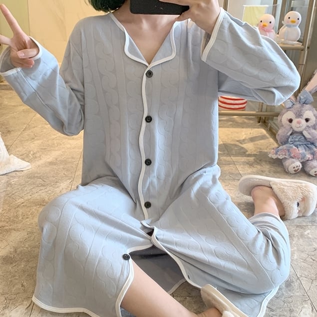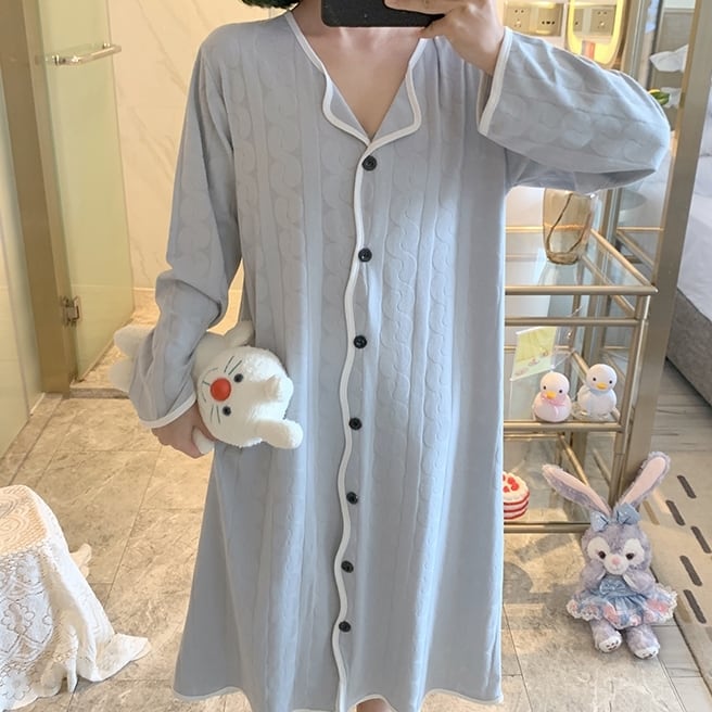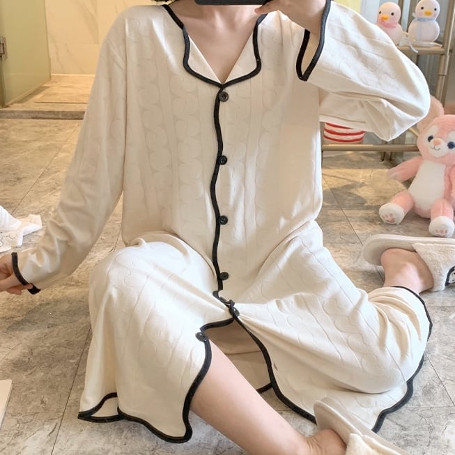 幾何学のエンボス加工がこなれたデザインのワンピースルームウェアです。