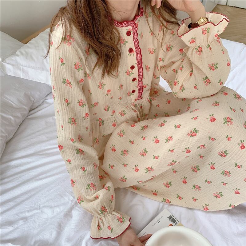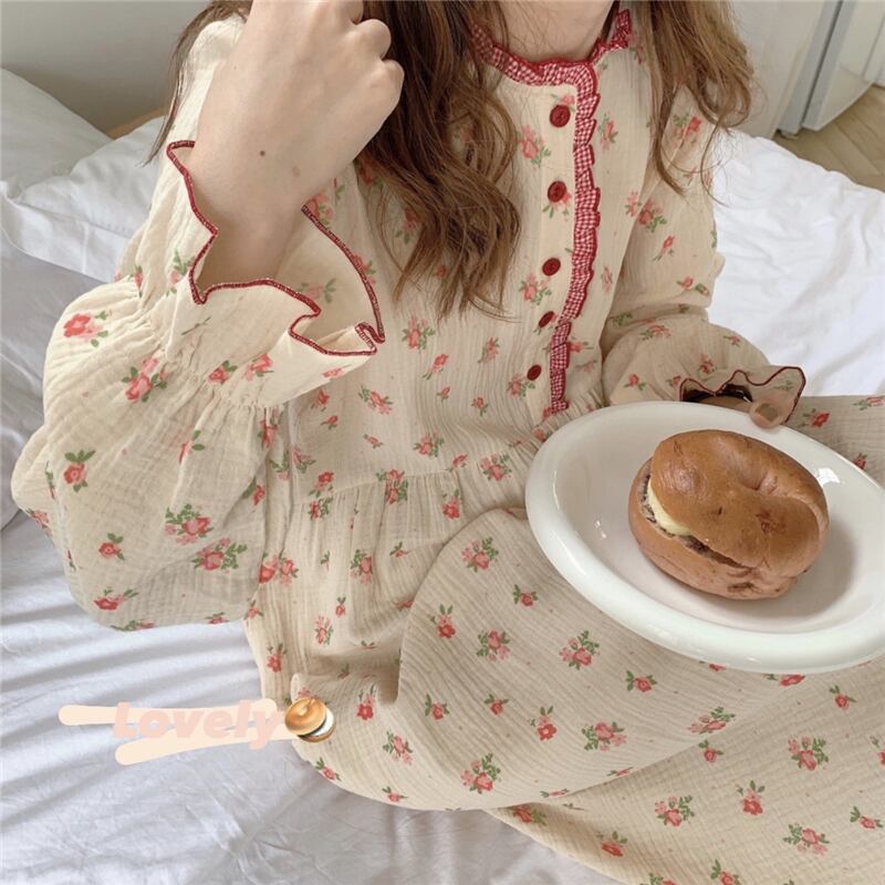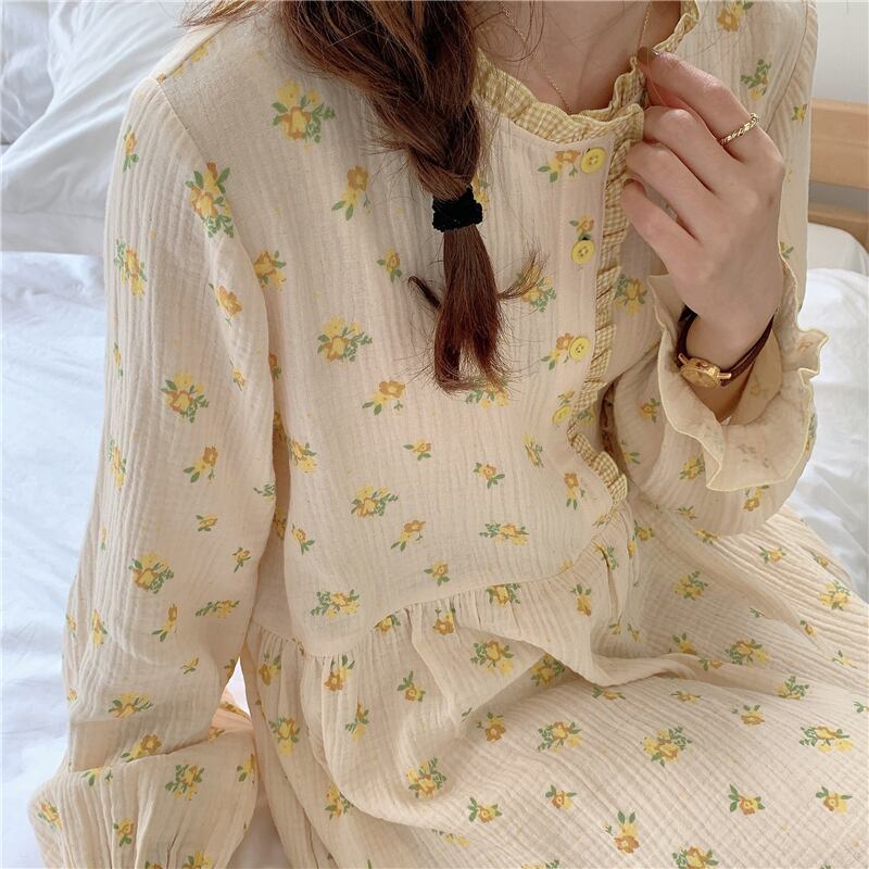 【送料無料】2色 パジャマ ワンピース ルームウェア レディース ミモレ丈 レッド イエロー ラウンドネック フリル チェック フラワー 小花柄 シャツ風 キャンディースリーブ 甘め 春 夏 部屋着 ラフ ナイトウエア 寝間着 ネグリジェ おしゃれ かわいい ラブリー 可愛い 個性的 インスタ映え 旅行 双子 ファッション コーデ デート お泊り 女子会 お揃い 主役級 10代 20代 春 夏 トレンド 抜け感 オシャレ ゆったり らくちん ルーズ ゆる キュート プチプラ db3178