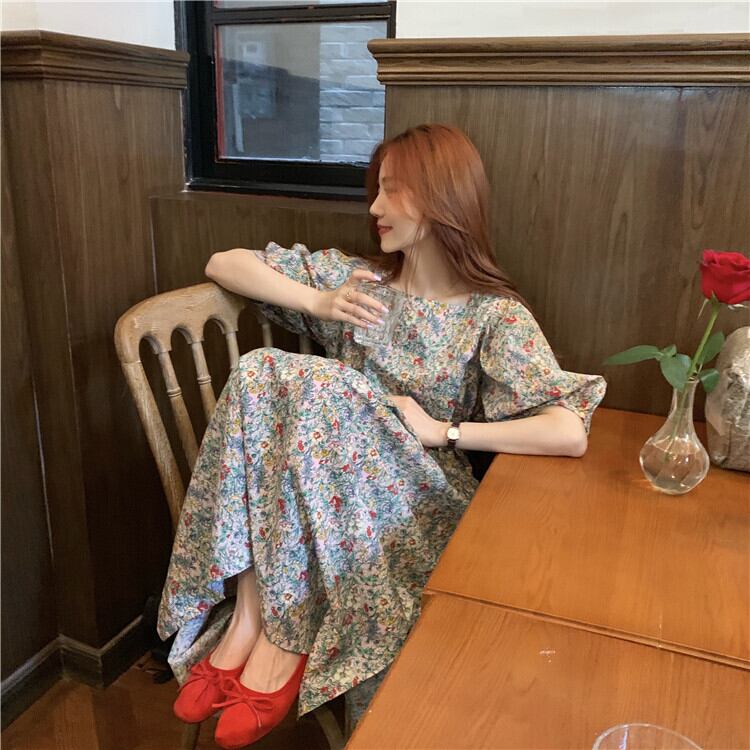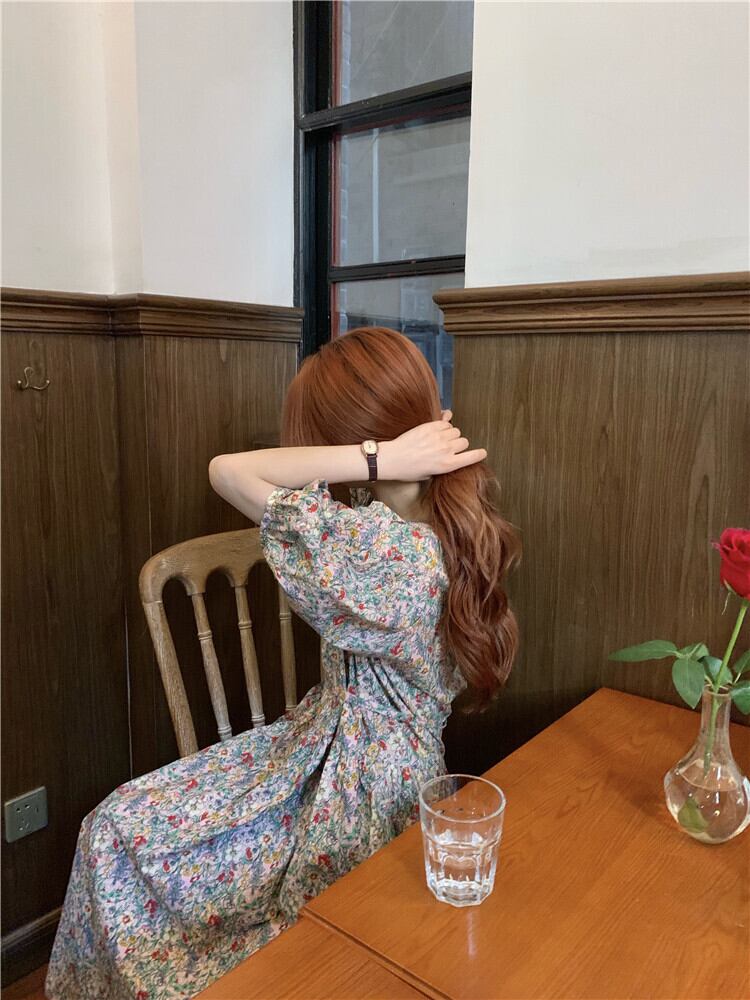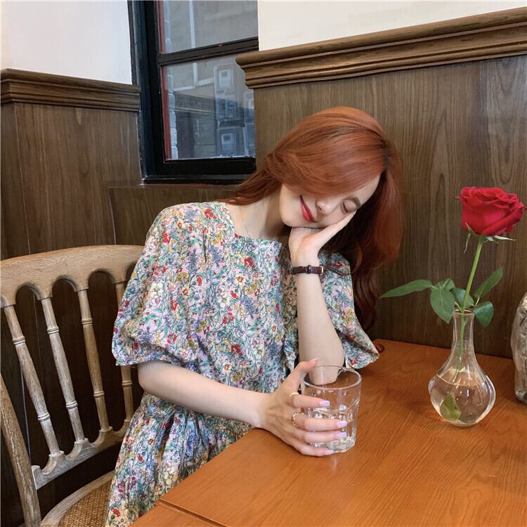 【送料無料】ワンピース ミニ ドレス 花柄 五分袖 レトロ ガーリー フレア ウエストマーク Aライン ミモレ丈 ワンピ フラワー レディースおしゃれ 総柄 長袖 スクエアネック 春 スプリング ブルー ピンク ホワイト きれいめ モテコーデ モテる デート キュート かわいい あざとい いい女 普段 大人 可愛い 主役級 脚長 華やか プリティ インスタ映え 海外 トレンド 流行 高見え 10代 20代 30代 着痩せ 韓国系 安い プチプラ 存在感 db3200