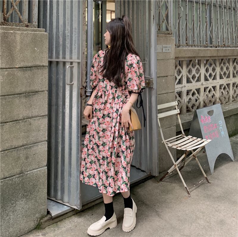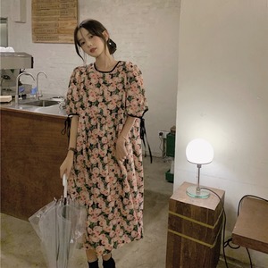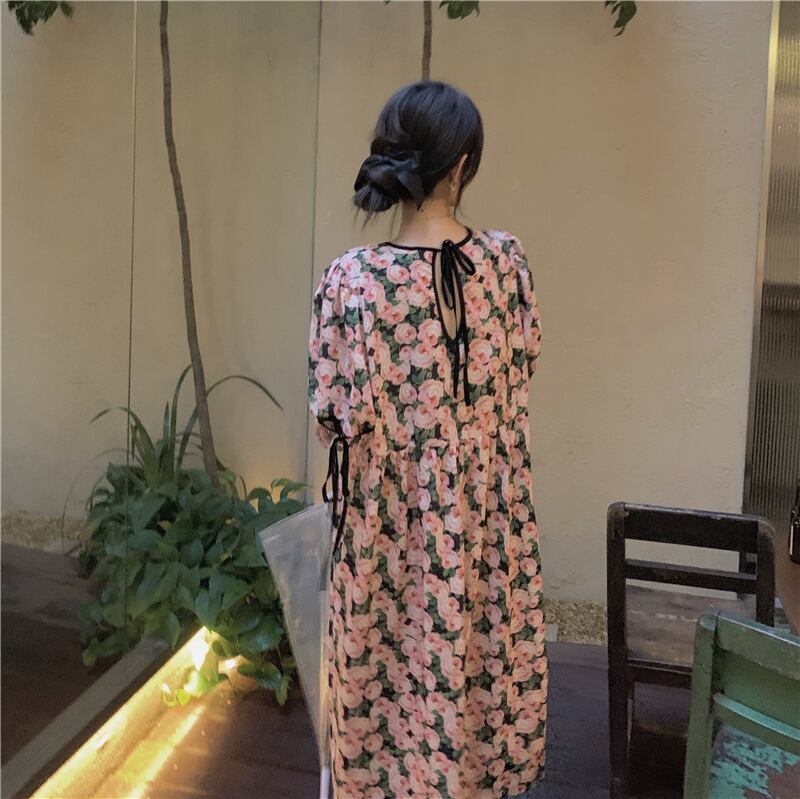 【送料無料】ワンピース ミモレ丈 ドレス 花柄 五分袖 バラ 薔薇 ローズ クルーネック パイピング バイカラー レトロ ガーリー フレア ウエストマーク Aライン ミモレ丈 ワンピ レディース おしゃれ 総柄 春 スプリング ピンク きれいめ モテコーデ モテる デート キュート かわいい あざとい いい女 普段 大人 可愛い 主役級 脚長 華やか プリティ インスタ映え 海外 トレンド 流行 高見え 10代 20代 30代 着痩せ 韓国系 安い プチプラ 存在感 db3202