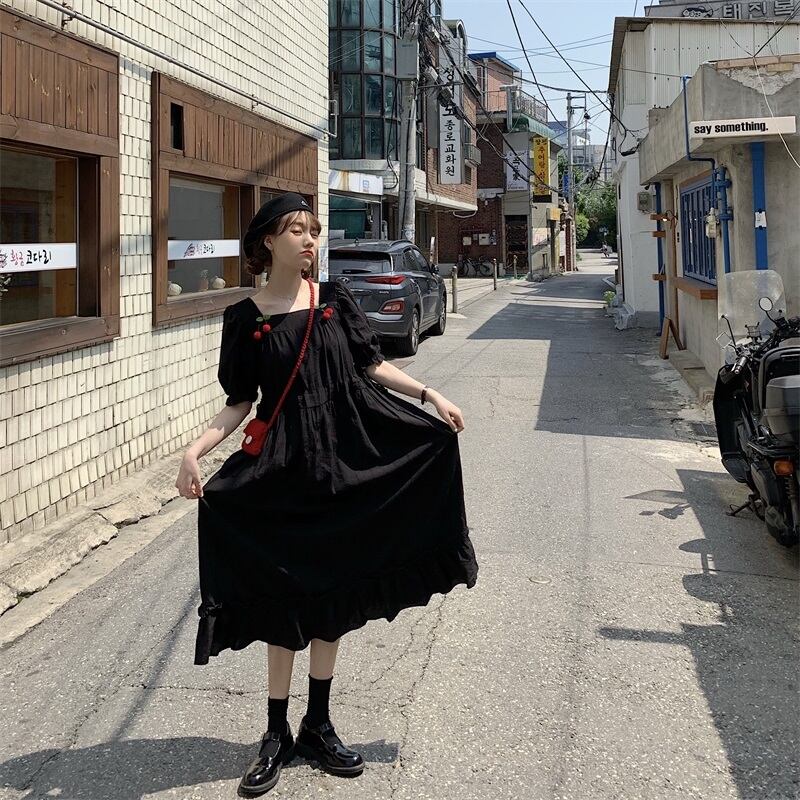 【送料無料】ワンピース ミモレ丈 ドレス 花柄 半袖 さくらんぼ チェリー スクエアネック バイカラー レトロ ガーリー フレア ウエストマーク Aライン ミモレ丈 ワンピ レディース おしゃれ 総柄 春 スプリング ピンク きれいめ モテコーデ モテる デート キュート かわいい あざとい いい女 普段 大人 可愛い 主役級 脚長 華やか プリティ インスタ映え 海外 トレンド 流行 高見え 10代 20代 30代 着痩せ 韓国系 安い プチプラ 存在感 db3203