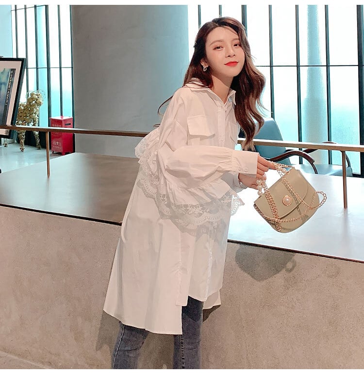 【送料無料】 シャツ ブラウス ワンピース 長袖 ホワイト ブラック レディース マタニティ― 大きいサイズ ゆったり オーバーサイズ 春 秋 トップス ブルーデニム レース ロングテール ビッグシルエット ボタン 個性的 レトロ 可愛い 韓国 ファッション 袖あり 襟あり カジュアル 10代 20代 レディース ママ OL 学生大人可愛い きれいめ カジュアル 大人 おしゃれ こなれ感 ラブリー 個性的 主役級 存在感 着回し 普段使い 重ね着 モテ トレンド 流行 インスタ映え db3206