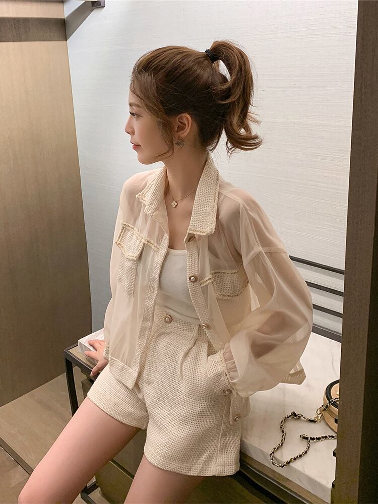 【送料無料】セットアップ スーツ フォーマル ホワイト系 アプリコット タック キュロットパンツ 透け感 シアー ブラウス シフォン ツイード 切り替え ショートパンツ かっこいい レディース 上下セット カジュアル大人可愛い きれいめ シンプル ママ 長袖 ジャケット 上着 春 夏 上品 おしゃれ クール ツーピース お得 コーデ 10代 20代 30代 ビジネス OL 通勤 リクルート韓国 海外 ファッション パーティー パンツドレス お呼ばれ フォーマル 卒業式 入学式 db3224