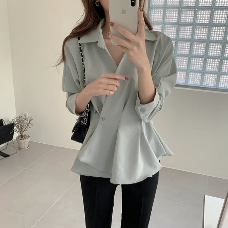 【送料無料】ブラウス シャツ 無地 Vネック レトロ シンプル フレア シック 長袖 トップス 着回し カッコイイ クール きれいめ 通勤 通学 可愛い スタイリッシュ モテる スタイルアップ 着痩せ レディース ブルー 青 小さいサイズ S M 大きいサイズ L XL 春 秋 冬 おしゃれ デート 大人可愛い お出かけ 存在感 こなれ感 抜け感 女子会 普段使い デイリー使い 休日 主役級 インスタ映え 韓国ファッション 海外トレンド 大人気 高見え 流行 10代 20代 30代 プチプラ db3115