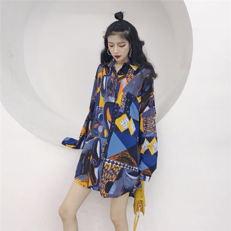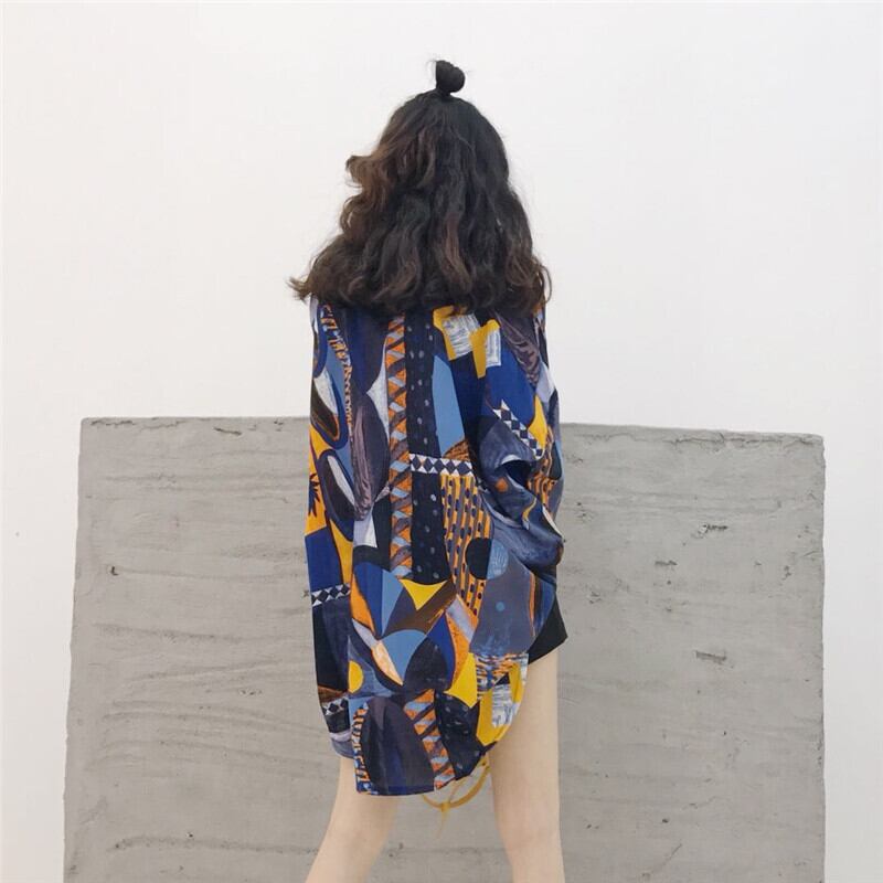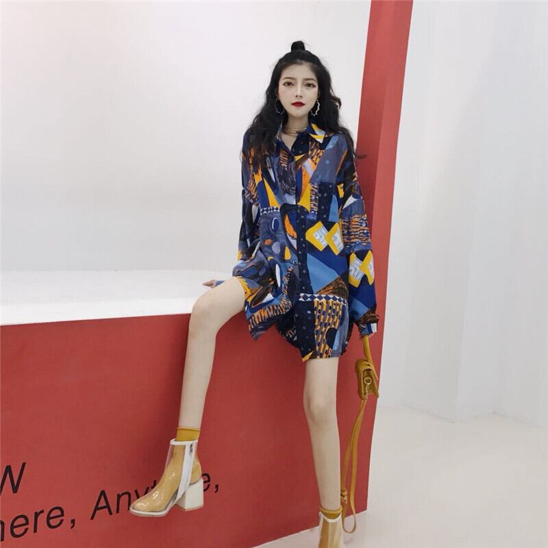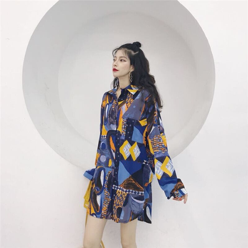 【送料無料】柄 シャツ ロング ブラウス クール インパクト 個性的 長袖 トップス カッコイイ 斬新 着回し シック モード系 羽織り 可愛い スタイリッシュ モテる レディース フリーサイズ ワンサイズ ブルー 青 春 夏 スプリング サマー おしゃれ デート 大人可愛い マニッシュ カジュアル ロングシャツ ロングトップス 大きめ お出かけ 存在感 こなれ感 抜け感 インスタ映え 韓国ファッション 海外 モデル 総柄 ユニーク 10代 20代 30代 プチプラ db3121