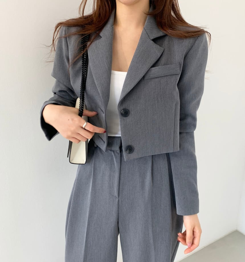【送料無料】2色 セットアップ ジャケット パンツ スーツ 上下セット かっこいい 長袖 シンプル 無地 ツーピース 黒 グレー 個性的 ショート丈 上着 アウター ロングパンツ ストレート 大人 上品 きれいめ カジュアル フォーマル 通勤 通学 レディース ブラック 灰色 クール マニッシュ 大人可愛い S M 大きいサイズ L インスタ映え 韓国ファッション 海外 パーティードレス パンツ ズボン こなれ感 抜け感 結婚式 二次会 お呼ばれ イベント 10代 20代 30代 40代 db3127
