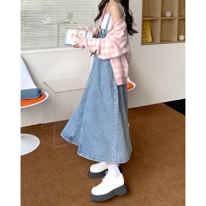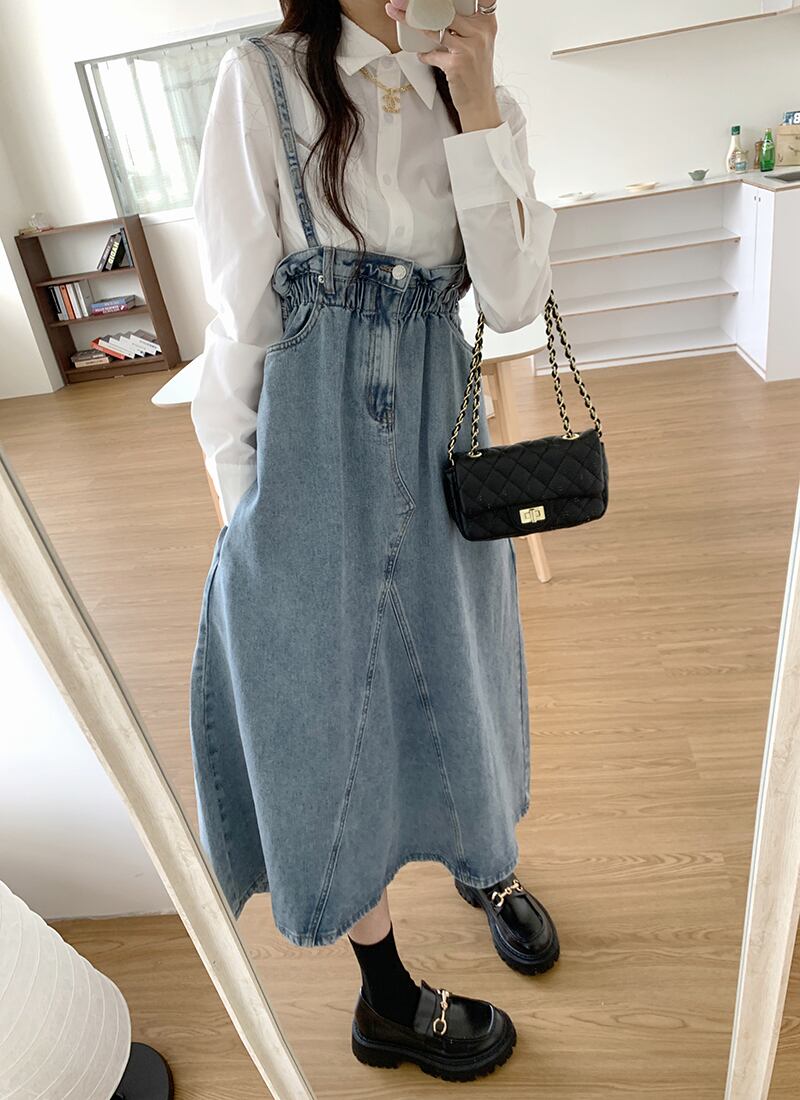 【送料無料】ミモレ丈 ワンピース デニム ジャンスカ サスペンダー付きスカート レトロ かわいい カジュアル ガーリー 個性的 ロングスカート 水色 淡色 ブルーデニム フレア カワイイ プリティ 着回し 大人女子 レディース S M 大きいサイズ L おしゃれ 春 夏 スプリング サマー ブルー 青 ジャンパースカート ボトムス ワンピ 大人可愛い モテコーデ デート お出かけ 存在感 主役級 こなれ感 韓国ファッション 海外 10代 20代 30代 プチプラ db3144