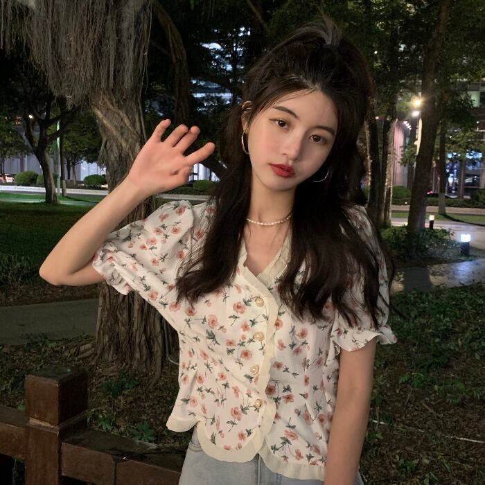 【送料無料】2色 半袖 ブラウス シャツ Vネック 花柄 シンプル ガーリー プリティ かわいい 夏 トップス お姉さん きれいめ 着回し 可愛い スタイリッシュ モテる フラワー 小花柄 レディース ピンク イエロー 黄色 ワンサイズ フリーサイズ 春 夏 スプリング サマー おしゃれ デート 大人可愛い お出かけ 存在感 こなれ感 抜け感 女子会 普段使い デイリー使い 休日 主役級 インスタ映え 韓国ファッション 海外 白ブラウス 白トップス 10代 20代 30代 プチプラ db3146