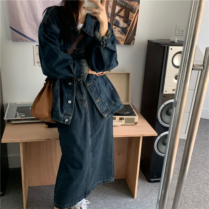 【送料無料】 セットアップ デニム Gジャン スカート ジャケット 2点セット 長袖 ロング丈 オーバーサイズ 青 ブルー 襟付き 個性的 大人可愛い かっこいい おしゃれ こなれ感 S M L インスタ映え 春 夏 秋 冬 10代 20代 30代 可愛い クール 大人女子 コーデ 通勤 学生 OL お揃い 双子 韓国 ファッション 人気 大人カジュアル 映え 無地 トレンド かわいい 主役級 お出かけ 女子会 デート 抜け感 存在感 イベント 普段使い マニッシュ カジュアル シンプル db3245
