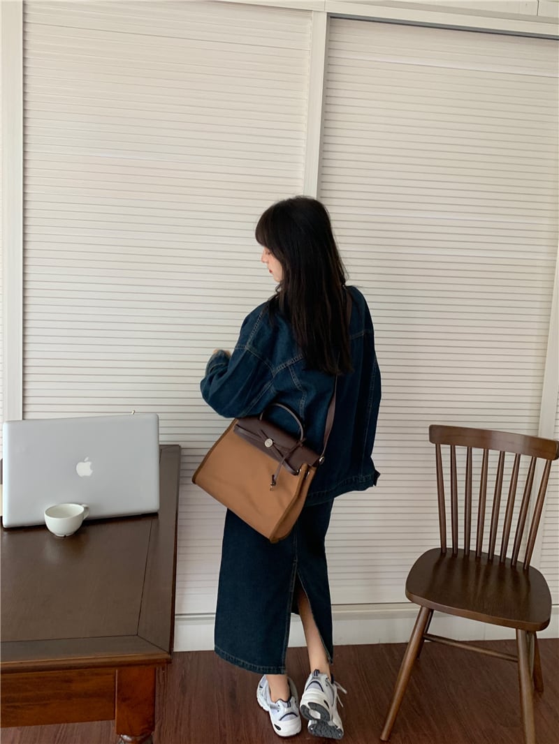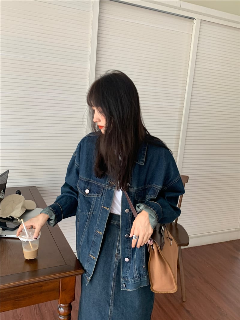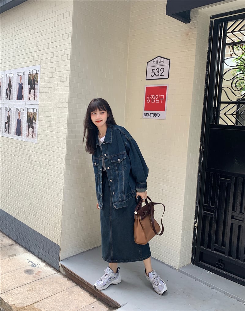 オーバーサイズのデニムジャケットとデニムスカートのセットアップ♪