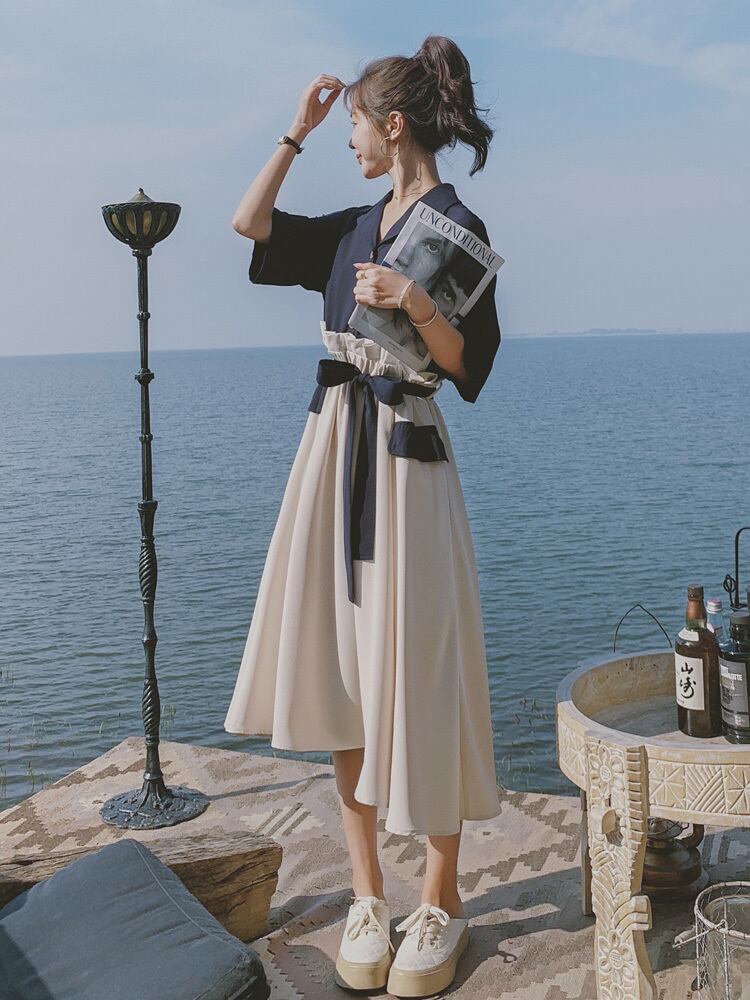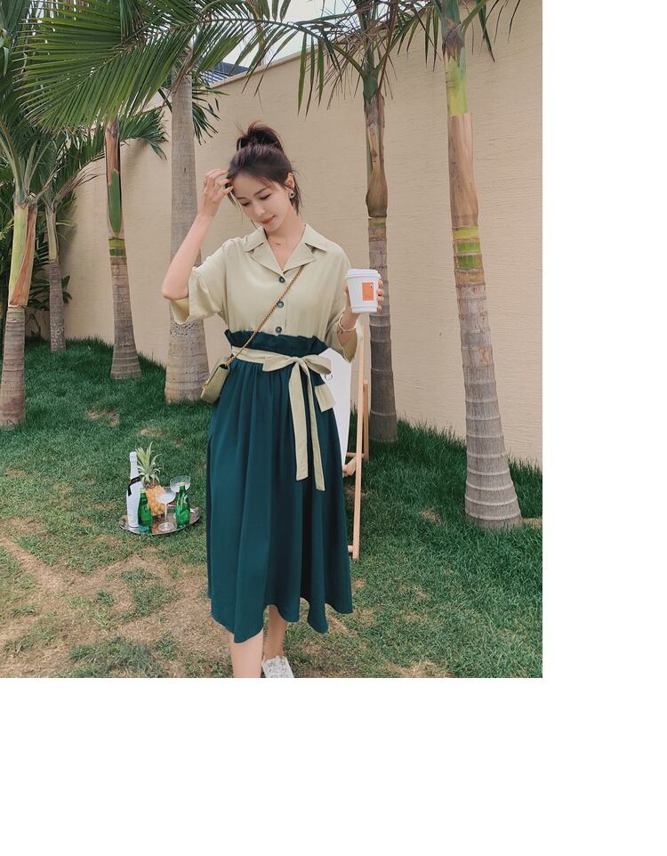 【送料無料】2色 シャツワンピース ロング丈 ミモレ丈 無地 半袖 ワンピ スカート バイカラー きれいめ 個性的 Aライン フレア 大人可愛い かっこいい 青 ブルー 緑 グリーン レトロ ワンピドレス リボン ハイウエスト 大人可愛い おしゃれ S M L XL こなれ感 インスタ映え 春 夏 10代 20代 30代 お出かけ 韓国 スタイル ファッション コーデ デート 女子会 かわいい 人気 大人カジュアル クール トレンド 主役級 存在感 スタイル 個性的 ガーリー 海外 db3246