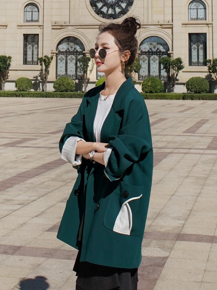 【送料無料】 2色 ロングジャケット アウター レディース 襟付き ボタン ポケット おしゃれ 大人可愛い 緑 黒 グリーン ブラック 長袖 コート ポイントカラー ロング丈 カジュアル 大人かわいい こなれ感 インスタ映え アイテム 韓国 ファッション お洒落 大人カジュアル コーデ デート 通学 学生 通勤 休日 女子会 お出かけ 普段使い 主役級 10代 20代 30代 春 秋 冬 トレンド 映え 抜け感 個性的 存在感 オシャレ シンプル クール 女子力 大人カジュアル マニッシュ db3249