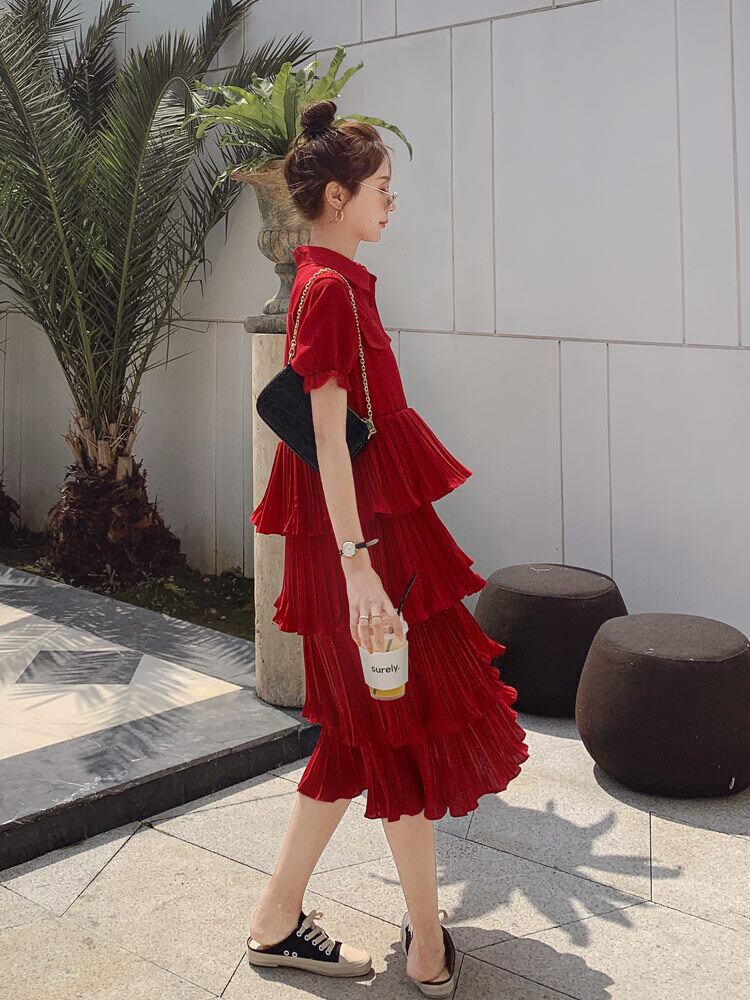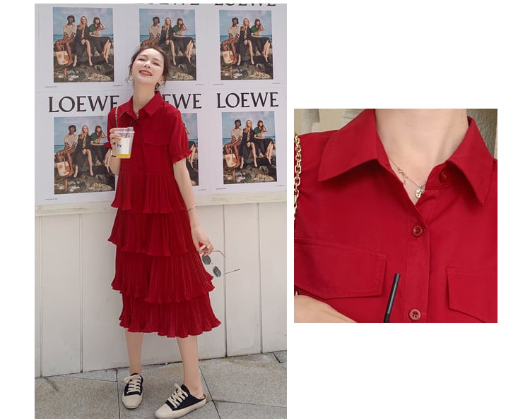 【送料無料】 2色 ティアードワンピース シャツ ワンピ レディース ミモレ丈 ミドル丈 襟付き 半袖 五分袖 パフスリーブ 個性的 フリル フレア 春 夏 ワンピ ドレス ギャザー 無地 ハイウエスト おしゃれ 赤 白 レッド ホワイト カジュアル こなれ感 大人可愛い かっこいい S M L XL コーデ 通勤 学生 10代 20代 30代 韓国 ファッション お揃い 普段着 デート 女子会 お洒落 存在感 主役級 ガーリー とろみ感 かわいい レトロ ラブリー db3255