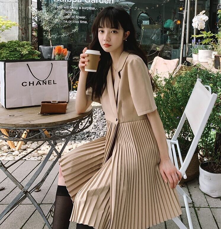 【送料無料】2色 プリーツワンピース 半袖 シャツ ワンピ 膝丈 膝上 ミニ レトロ 可愛い 個性的 襟付き 五分袖 プリーツ ボタン ベージュ 黒 無地 ワンピース 春 夏 ハイウエスト おしゃれ 茶 ブラウン ブラック カジュアル 可愛い こなれ感 大人可愛い かっこいい S M L XL コーデ 通勤 学生 10代 20代 30代 韓国 ファッション お揃い 普段着 デート お出かけ お洒落 存在感 主役級 ガーリー かわいい レトロ ラブリー きれいめ モテコーデ 海外 db3256