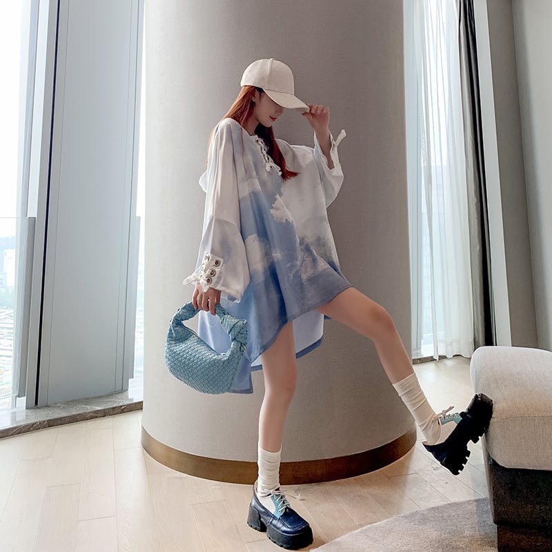 【送料無料】2色 ロング丈 トップス レディース フード付き プルオーバー 薄手 空 雲 鳥 グラデーション 長袖 ゆったり グレー 白 青 ブルー 個性的 面白い カジュアル 大きいサイズ 2XL ア可愛い スタイリッシュ 春 夏 袖あり パーカー ゆるカジ ダボダボ ルーズ ラフ スポーティー 韓国 ファッション おしゃれ 海外 トレンド 10代 20代 30代 安い 斬新 ユニーク コーデ フーディ ニュアンスカラー 他にない 目立つ ワンピ 海 プール 羽織 日焼け防止 db3304