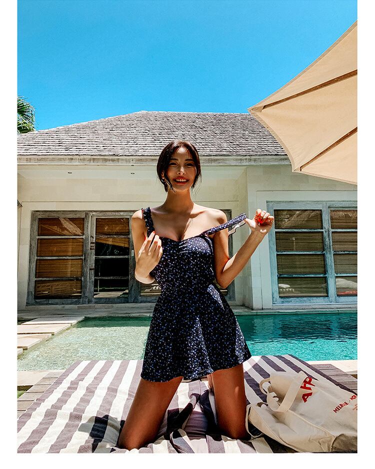【送料無料】ワンピース 水着 スカート レディース 小花柄 フラワー ネイビー 紺色 体型カバー 水着 韓国 ファッション シャーリング フリル セクシー ガーリー 大人可愛い 小悪魔 キャミソールタイプ 女性用 ワンピ 水着 オールインワン キュート M L XL ラブリー 安い バックシャン 背中 色っぽ 女っぽ インスタ映え プール 海 旅行 リゾート デート 夏 春 10代 20代 30代 40代 人気 ファッション オシャレ パッド付き 脚長 美脚 db3331