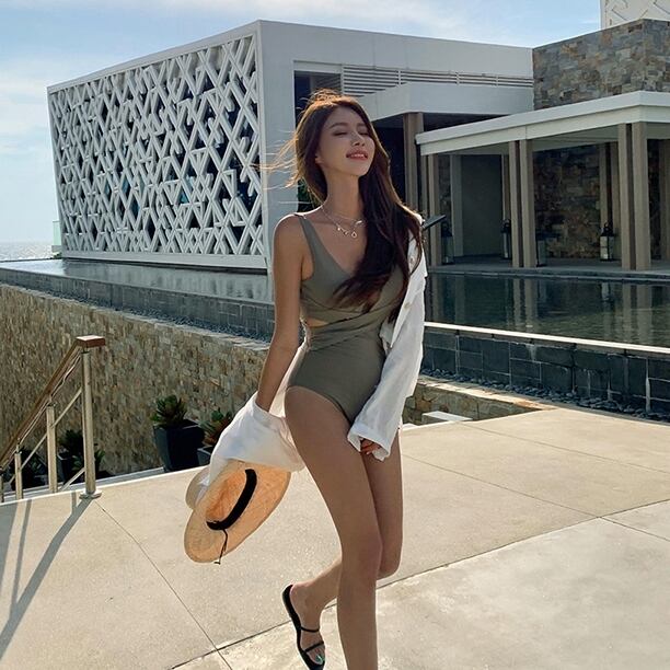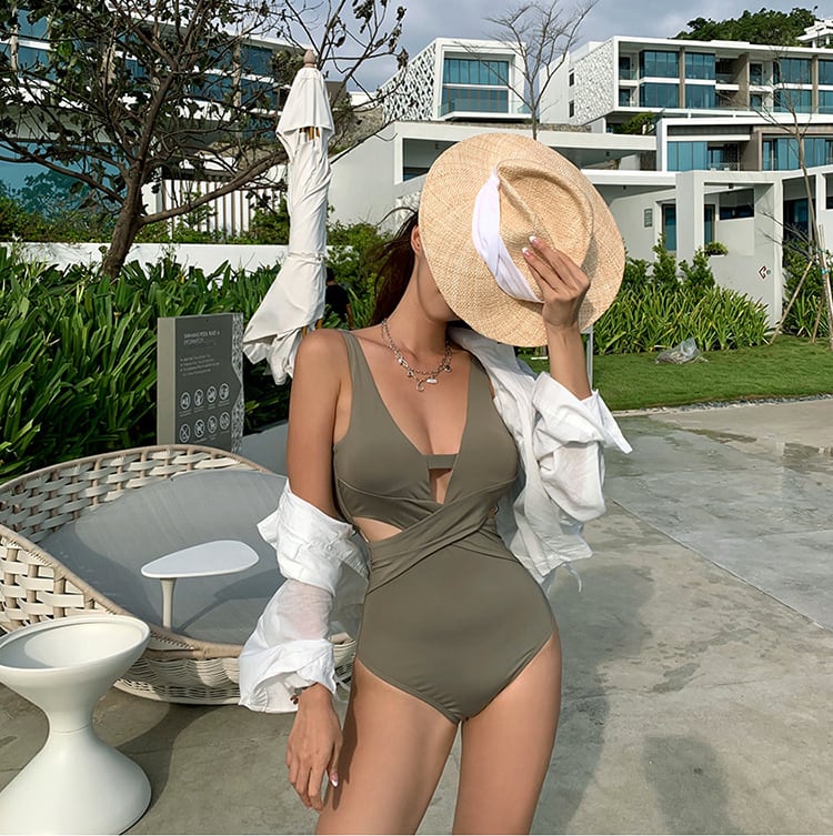 【送料無料】2色 モノキニ ワンピース 水着 オールインワン レディース ハイレグ カッコイイ フロントクロス バックオープン 黒 カーキ 無地 セクシー カットアウト お腹カバー 大人 ヘルシー 海外 ナチュラル 谷間見せ 露出 女性用 海 海水浴 プール ナイトプール シンプル 無地 旅行 リゾート クール モダン 存在感 女っぽ 10代 20代 30代 大きいサイズ ユニーク おしゃれ トレンド 人気 細身 華やか 大人っぽ 存在感 お得 インスタ映え 脚長効果 美脚 スタイリッシュ db3333