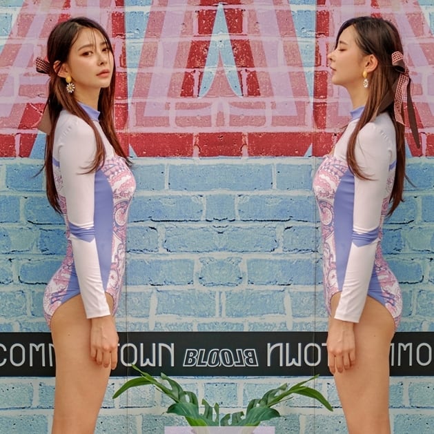 バストのカットアウトがセクシーな切り替えデザインのラッシュガード