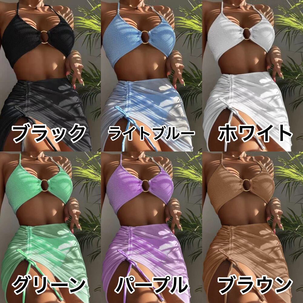 【送料無料】ビキニ パレオ 3点セット セクシー スポーティー セパレート 水着 上下セット 体型カバー かっこいい ヘルシー ニット風 海外 ビキニ 紐 ブラジリアン ホルターネック 黒 白 無地 ブラック ブルー ホワイト グリーン パープル ブラウン レッド オレンジ ピンク オブルー 黄緑 S M L XL 大きいサイズ 夏 リゾート バカンス 海 プール スイムウェア おしゃれ 大人可愛い 存在感 こなれ感 抜け感 グラビア 水着 衣装 イベント 個性的 10代 20代 30代 db3359