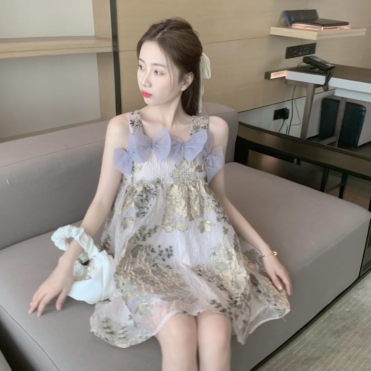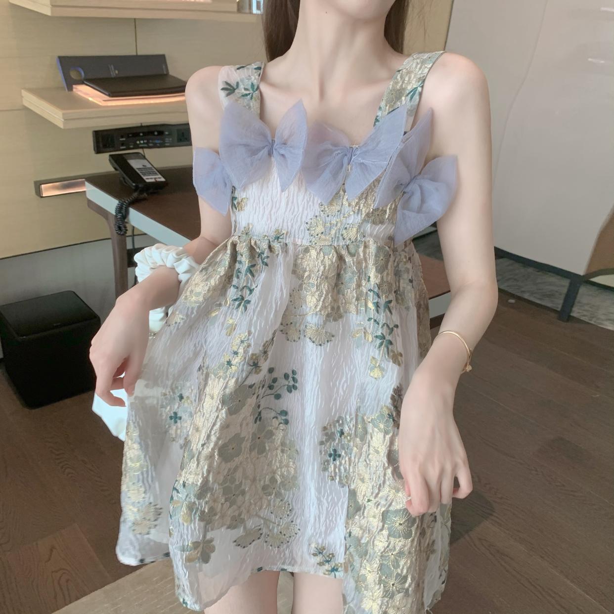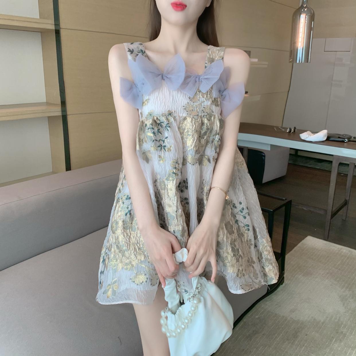 【送料無料】ミニワンピ ノースリーブ トップス フレア 花柄 ボタニカル 金色 メタリック リボン 個性的 可愛い おしゃれ ガーリー 袖なし 夏 ワンピース ショート丈 ボリューム感 くしゅくしゅ 大人カラー レトロ ホワイト 白 S M 大きいサイズ L ニュアンスカラー ユニーク 韓国 ファッション おしゃれ デート 大人可愛い お出かけ キャミソール 他にない パーティードレス お呼ばれ お出かけ 透け感 涼しげ 薄手 ふんわり ワンピドレス 10代 20代 db3376