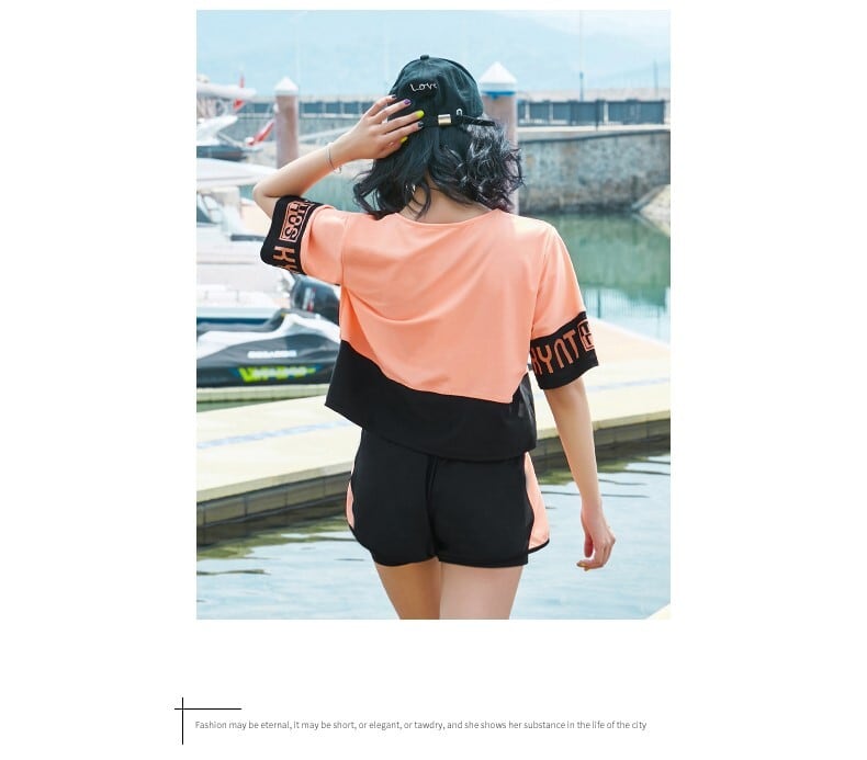 【送料無料】3色 タンキニ 水着 ビキニ 半袖 トップス 3点セット スポーティ カジュアル 体型カバー カッコイイ クール ストリート セパレート 水着 韓国 ショートパンツ バイカラー 黒 白 ピンク 青 フィットネス 運動 ヨガ ウェア スリーピース キュート スタイリッシュ レディース ブラック オレンジ ブルー S M 大きいサイズ L XL 2XL 春 夏 バカンス 海 プール 旅行 スイムウェア おしゃれ こなれ感 抜け感 海外 ボクサーパンツ 袖あり 水着 10代 20代 db3392